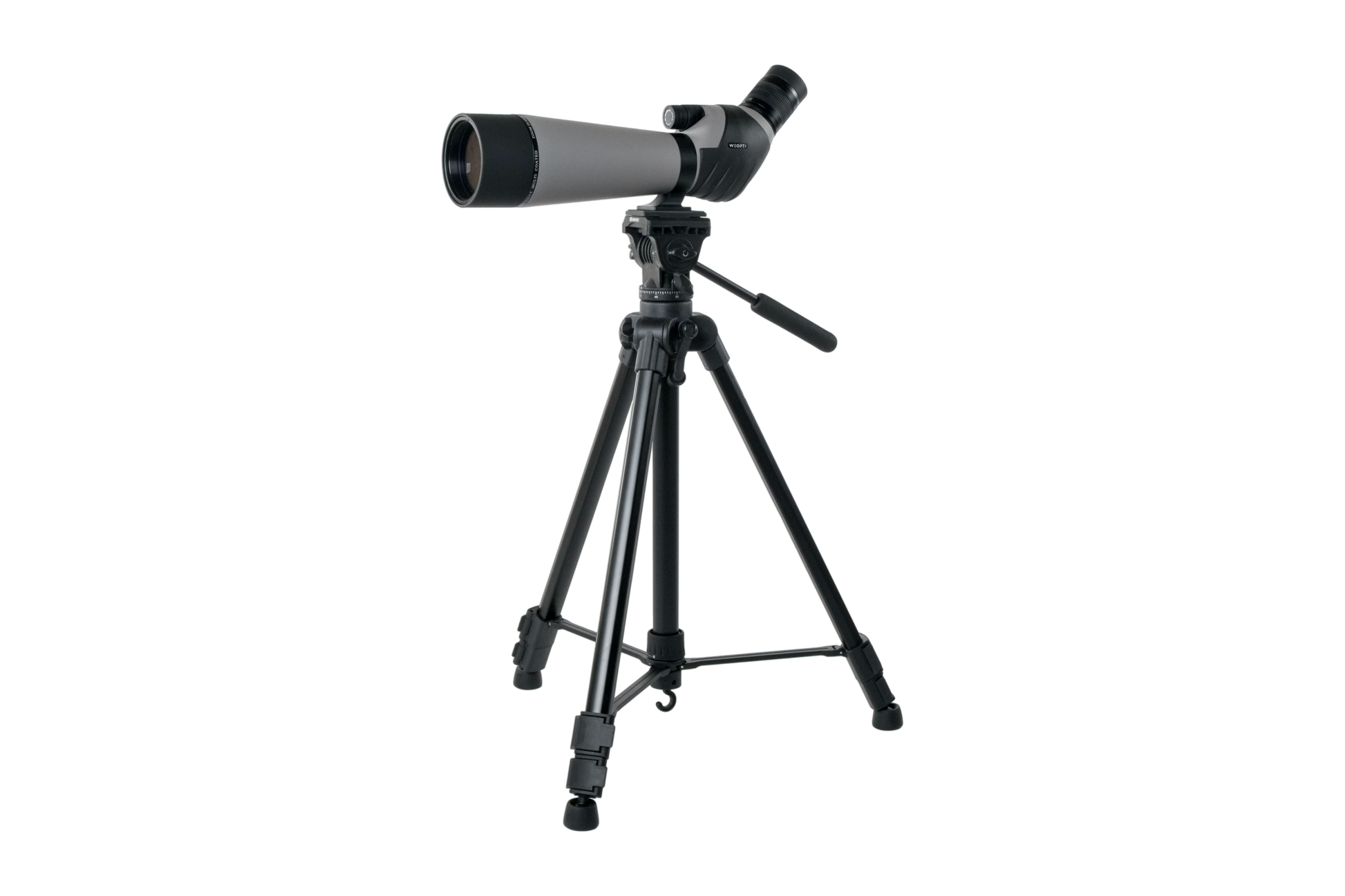 I kombination med stativet från Benro som har en bekväm arbetshöjd från 62 till 169 cm, gummerade fötter, och som klarar en tubkikare (eller kamera/videokamera) upp till 5 kg. En krok i nedre änden av mittpelaren gör att man kan hänga något tungt för att tynga ner stativet så det står stadig även i kraftig vind.